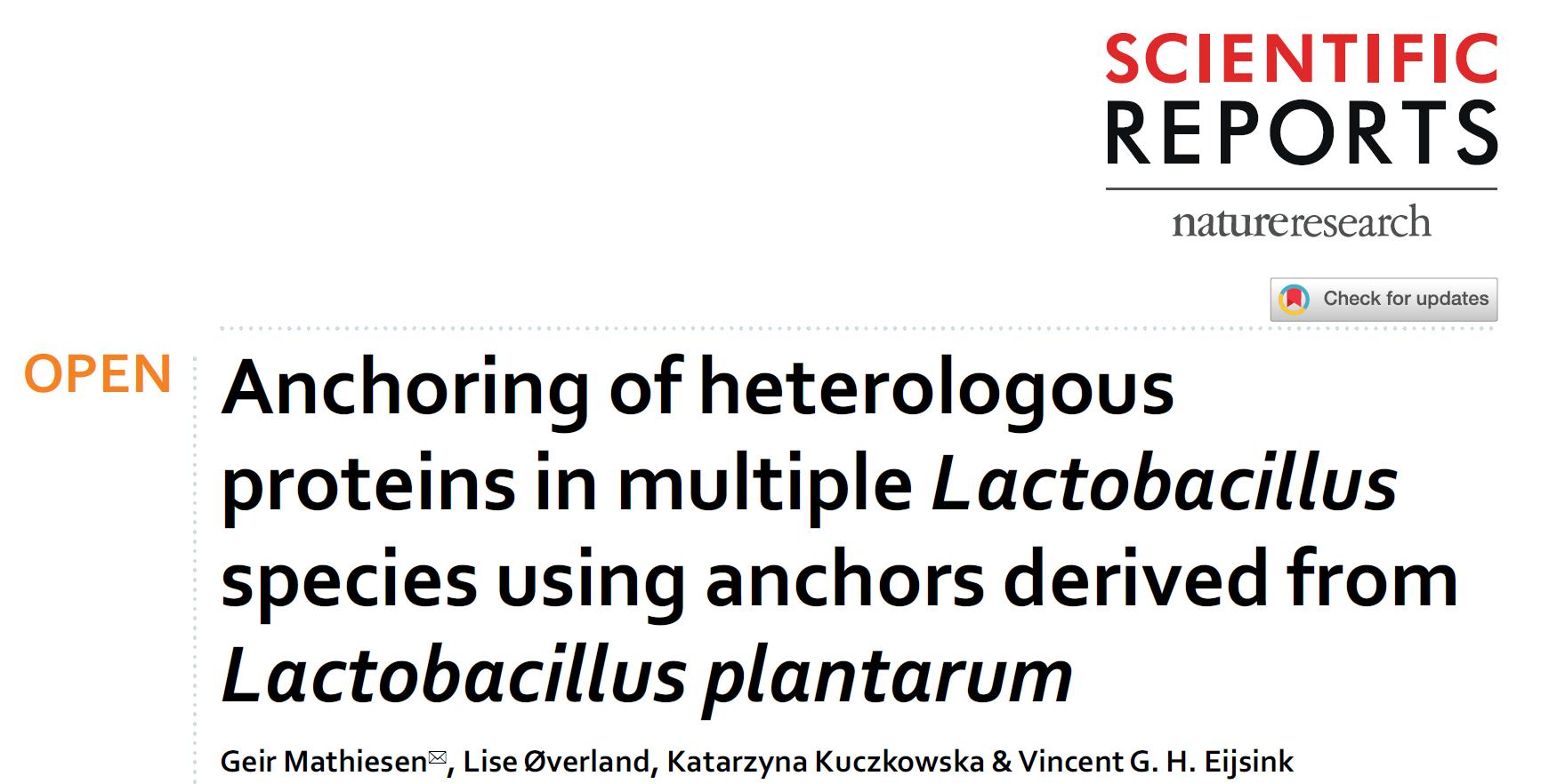 文章题目:Anchoring of heterologous proteins in multiple Lactobacillus species using anchors derived from Lactobacillus plantarum